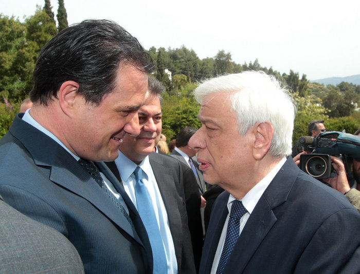 Ο φωτογραφικός φακός κατέγραψε μεταξύ άλλων τη θερμή χειραψίαπου είχε ο πρόεδρος της ΝΔ με την βουλευτή του κόμματος Ντόρα Μπακογιάννη, η οποία συνοδεύτηκα από χαμόγελα.