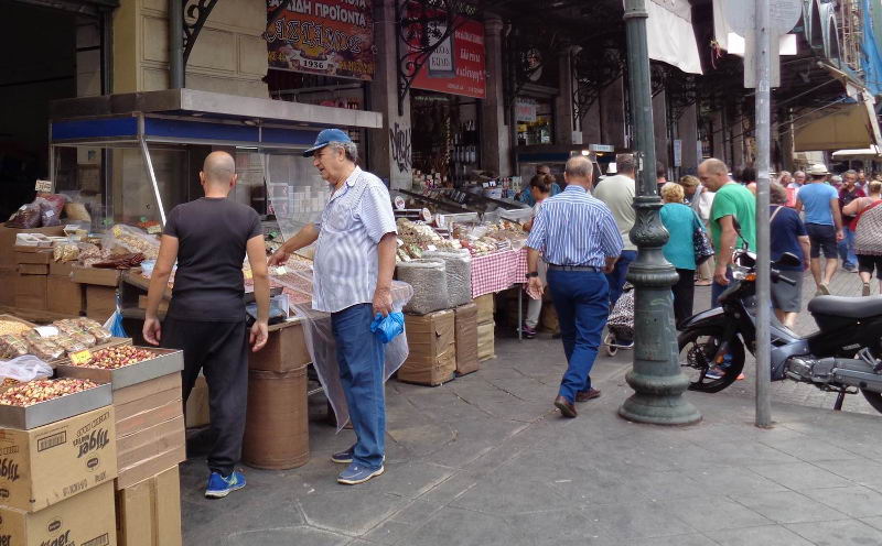 Πολλοί συνταξιούχοι ψάχνουν στη Βαρβάκειο Αγορά για να βρουν τα πιο φθηνά προϊόντα.