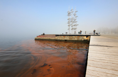 Κόκκινος βάφτηκε για μία ακόμη φορά ο Θερμαϊκός κόλπος στη Θεσσαλονίκη. Το φαινόμενο της ερυθράς παλίρροιας έκανε την εμφάνισή του στο παραλιακό μέτωπο της πόλης, δημιουργώντας μεγάλες κοκκινωπές κηλίδες.